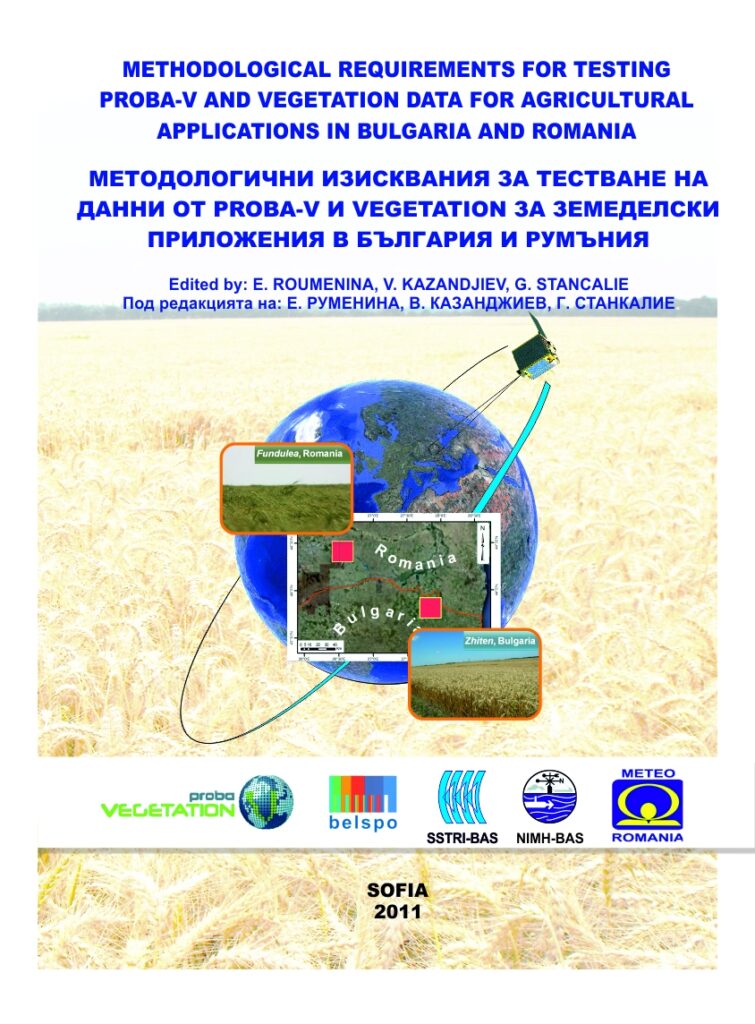 Разработена е методология за валидиране на симулирани изображения от PROBA-V и данни от SPOT-VEGETATION за земеделски приложения. Тя включва три работни задачи: съставяне на геобаза данни; провеждане на подспътникови експерименти; и извършване на сравнителен анализ на спътникови и наземни данни. Проведени са четири подспътникови експеримента за събиране на агрометеороло-гични данни за всеки от тестовите участъци, с цел оценка и измерване на състоянието на зимните посеви по време на растежа им. Към двата тестови участъка е приложена обща методология за измерване на биометрични и биофизични параметри на посева от зимна пшеница. Полевите данни са използвани за оценка на състоянието на зимните култури чрез моделите за растеж на посевите WOFOST и DSSAT. Всички полеви данни и симулирани изображения от PROBA-V, заедно с изображенията от SPOT-VEGETATION за сезона на растеж (2010 – 2011 г.), са организирани в геобаза данни.